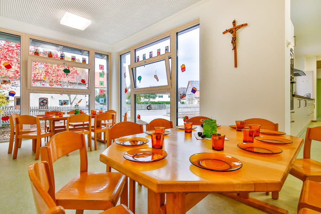 Unser Mittagessen wird wie in Tussenhausen von „VitaDora“ Mindelheim geliefert. Kinder die länger als 12:30Uhr gebucht haben, müssen am Mittagstisch teilnehmen.
